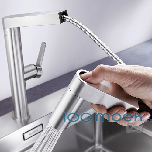 Кухонные смеситель Blanco уже давно стал классикой, они идеально вписываются в интерьер кухни с мойками из нержавеющей стали. Корпус смесителя идельно совпадает с другими элементами кухни из стали, создавая единую композицию.