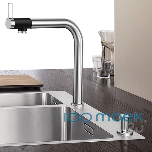 Кухонные смеситель Blanco уже давно стал классикой, они идеально вписываются в интерьер кухни с мойками из нержавеющей стали. Корпус смесителя идельно совпадает с другими элементами кухни из стали, создавая единую композицию.