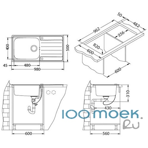 Модель европейского концерна Alveus PRAKTIK 100-LEI 980X500 1X нерж.сталь изготовлена из высококачественной стали и обладает всеми достоинствами этого материала.