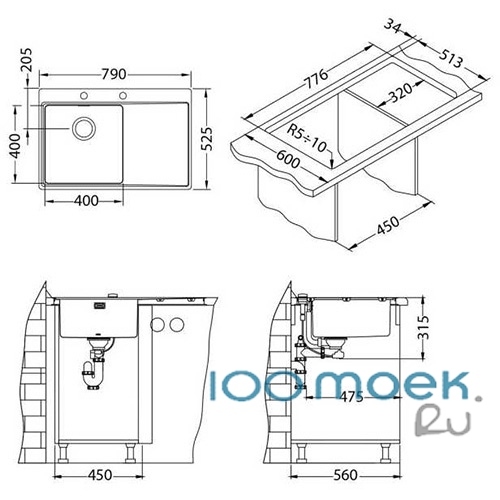 Она прекрасно подойдет для любой столешницы и гармонично впишется в любую кухню. Над формой и функциональностью отлично поработали дизайнеры Алвеус, сделав ее удобной для работы и ухода. Любая хозяйка, любящая готовить и проводящая много времени на кухне, по достоинству оценит Alveus PURE UP 40 KMB 90 FI правая 790X525 нерж.сталь.