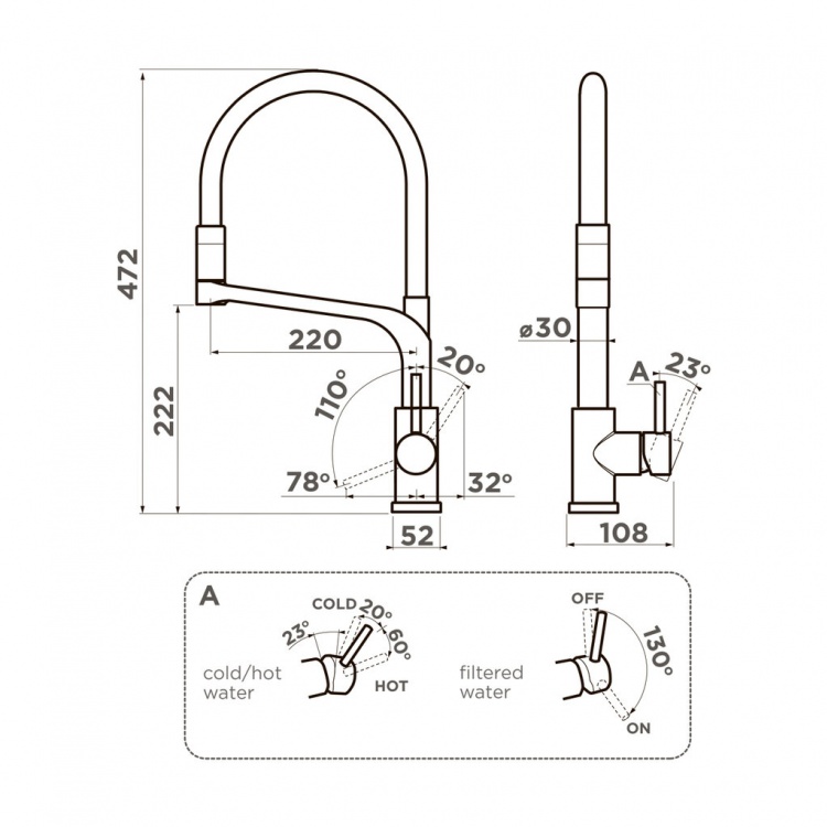 Управление подачей фильтрованной и водопроводной воды производится разными рукоятями управления. При этом не происходит смешивания водопроводной и питьевой воды, поскольку вода подается по разным каналам.