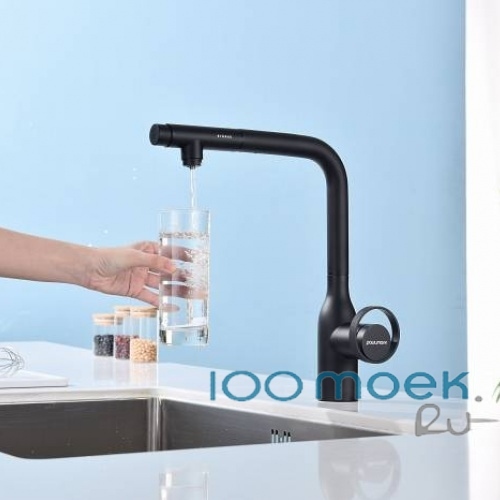 Смеситель Paulmark Urban поможет рационально обустроить кухонное пространство. Латунное устройство, изготовленное по технологии Trinkwasser, предназначено для подачи проточной и питьевой воды по раздельным каналам с аэраторами. Для смешивания горячего и холодного потоков служит керамический картридж диаметром 35 мм. Управление осуществляется рычагами с удобными рукоятками. Многослойное влагостойкое покрытие не истирается и не растрескивается.В комплекте: