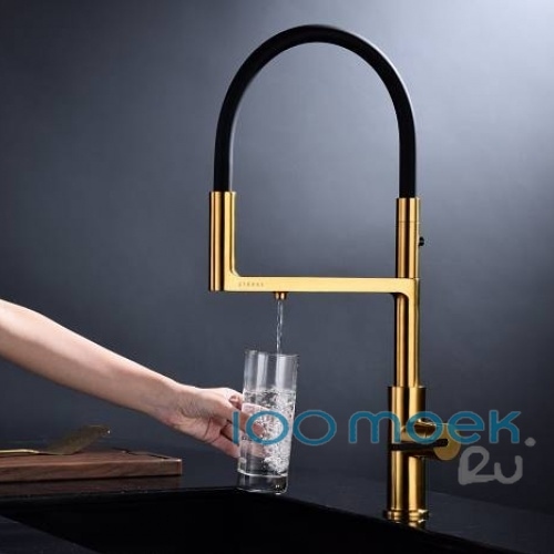 Смеситель Paulmark Tornado поможет рационально обустроить кухонное пространство. Латунное устройство, изготовленное по технологии Trinkwasser, предназначено для подачи проточной и питьевой воды по раздельным каналам с аэраторами. Для смешивания горячего и холодного потоков служит керамический картридж диаметром 35 мм. Управление осуществляется рычагами с удобными рукоятками. Многослойное влагостойкое покрытие не истирается и не растрескивается.В комплекте: