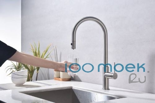 Смеситель в современном стиле Paulmark Galant с функцией подключения фильтра питьевой воды и выдвижным изливом, поможет рационально обустроить кухонное пространство. Подача очищенной воды включается кнопкой на конце излива. Излив выдвигается на расстояние до 60 см, что позволяет наполнять питьевой водой емкости рядом с мойкой. Кроме того, выдвижной излив облегчает уход за мойкой, позволяя ополоснуть каждый ее уголок. Латунное устройство, изготовленное по технологии Trinkwasser, предназначено для подачи проточной и питьевой воды по раздельным каналам с аэраторами. Для смешивания горячего и холодного потоков служит керамический картридж диаметром 35 мм. Многослойное влагостойкое покрытие не истирается и не растрескивается.