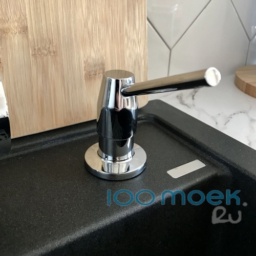 Для данной модели дозатора можно подобрать подходящий по дизайну кухонный смеситель, вместе с которым он будет выглядеть органично.